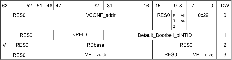 Scheduled vPE A virtual PE that is currently running on a physical PE. In GICv4, the scheduled vPE is specified by GICR_VPENDBASER.