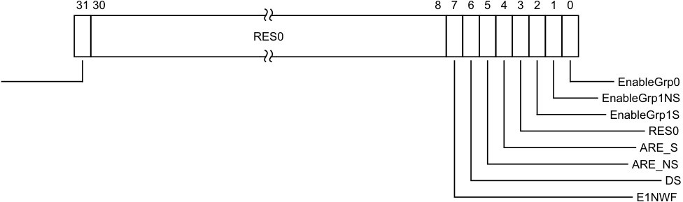 • While the use of the register is such that the bit is described as RES1, the value of the bit must have no effect on the operation of the PE, other than determining the value read back from that bit, unless the Arm[®] Architecture Reference Manual, Armv8, for Armv8-A architecture profile explicitly defines additional properties for the bit.