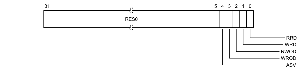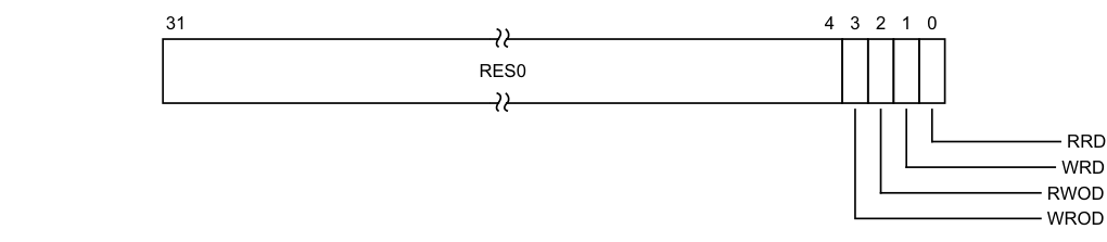 • While the use of the register is such that the bit is described as RES0, the value of the bit must have no effect on the operation of the PE, other than determining the value read back from that bit, unless the Arm[®] Architecture Reference Manual, Armv8, for Armv8-A architecture profile explicitly defines additional properties for the bit.
